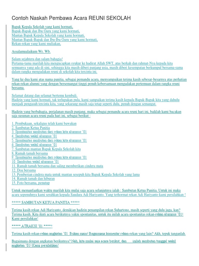 Teks Pembawa Acara Reuni Sekolah Kumpulan Contoh Teks Mc