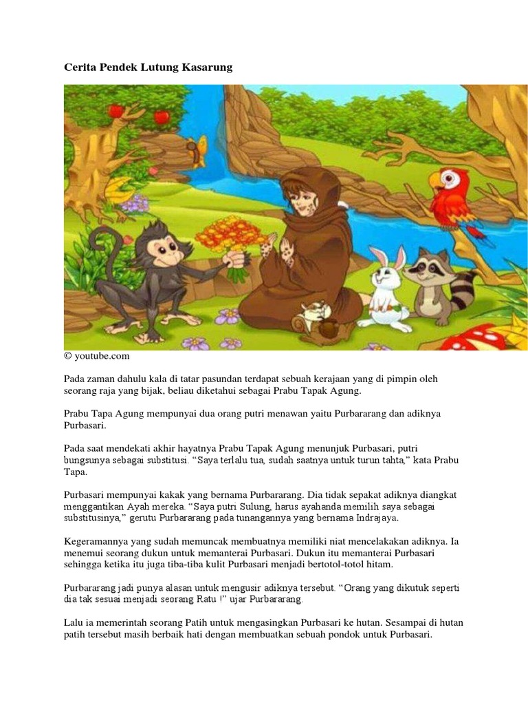Cerita rakyat Lutung Kasarung adalah dongeng yang terkenal di kalangan Masyarakat Sunda Jawa Barat. Lutung Kasarung TradisiKita - Lutung Kasarung yaitu sebuah cerita rakyat yang berasal dari tempat Jawa Barat. Erwin Kurniawan Prabu Tapa Agung menunjuk Purbasari putri bungsunya sebagai pengganti.