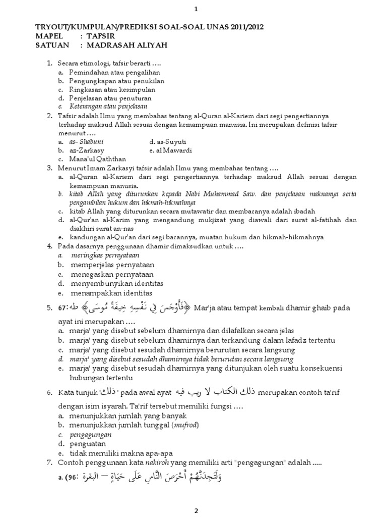 Ada sekitar 50 butir soal pgpilihan ganda bahasa indonesia tentang teks eksposisi kelas 810 dan jawabannya yang bisa adik adik smpsmasmkma jadikan referensi dalam menghadapi ujian dari guru. Pembahasan soal un bahasa indonesia sma tahun pela. Di dalam membantu peserta didik MI mempersiapkan diri menghadapi Ulangan Akhir Semester berikut ini latihan soal Ulangan Akhir Semester Al Quran Hadis MI Sesuai KMA 183 Tahun 2019.